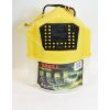 Green 5-gallon pail with camo swivel seat. Included is a Frabill model #4501 trolling bait pail and a Solid Fuel Handwarmer with fuel sticks and match safe.