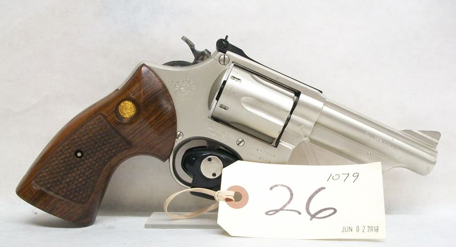 PROHIBITED, REVOLVER, 357 MAGNUM, 101MM BARREL, SN 5147727. WOOD GRIPS EXCELLENT, BRUSHED STAINLESS FRAME HAS A COUPLE MARKS, BORE EXCELLENT.