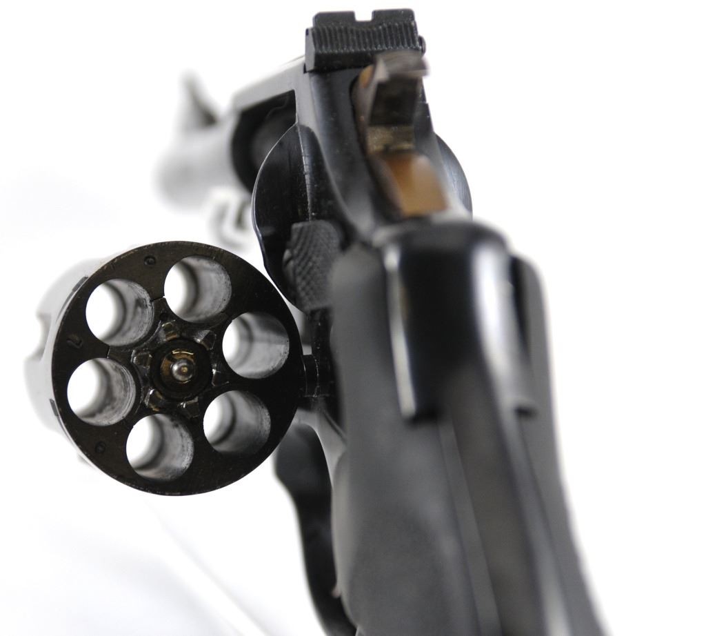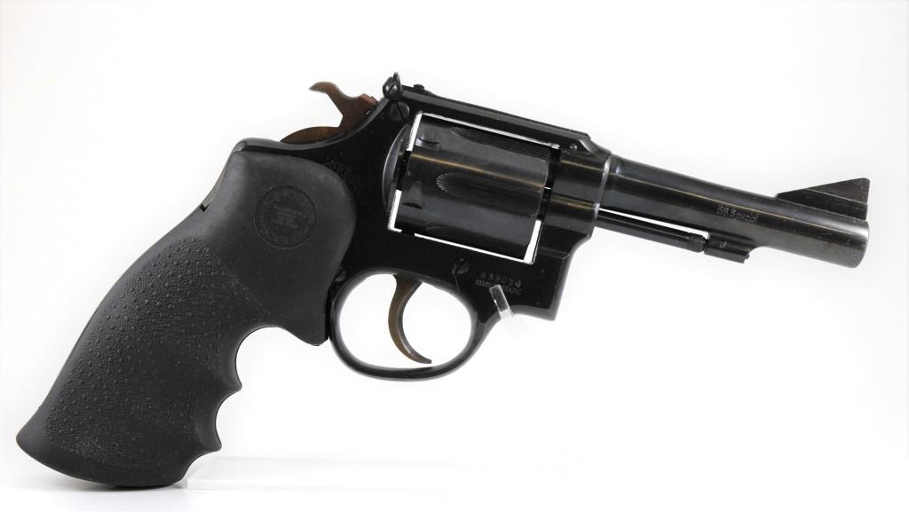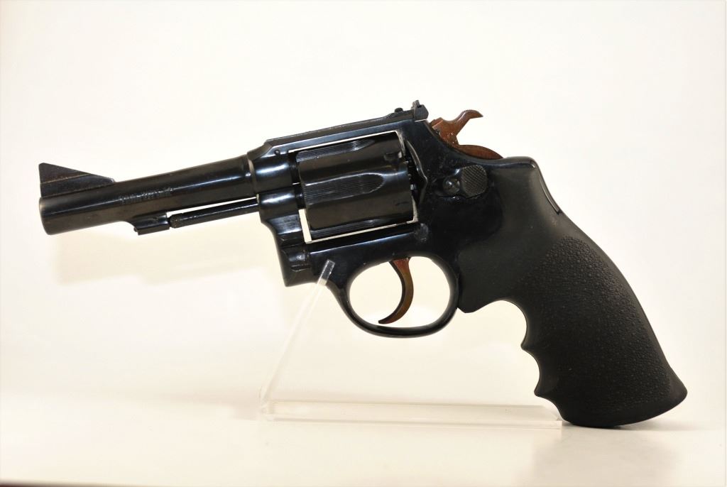 Prohibited, revolver, 38 S&W, 102mm barrel, SN 838074. Rubber grips very good, bluing and bore good.