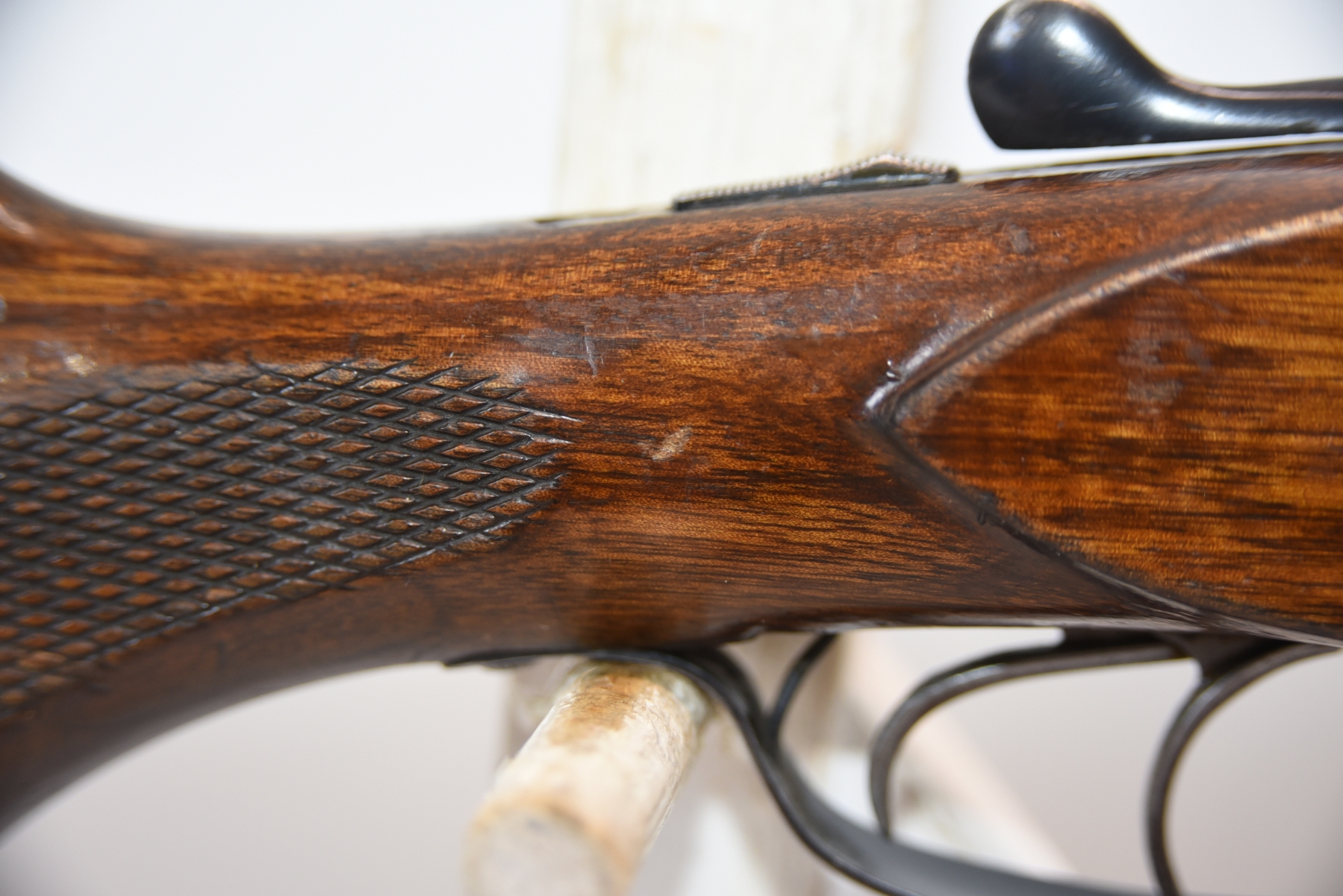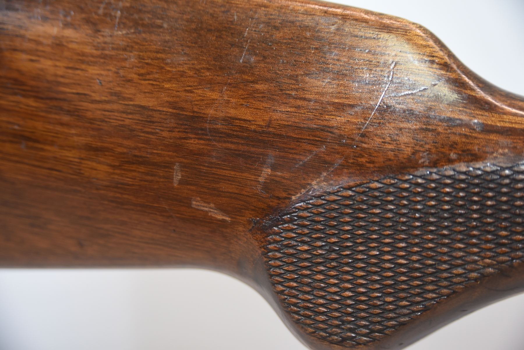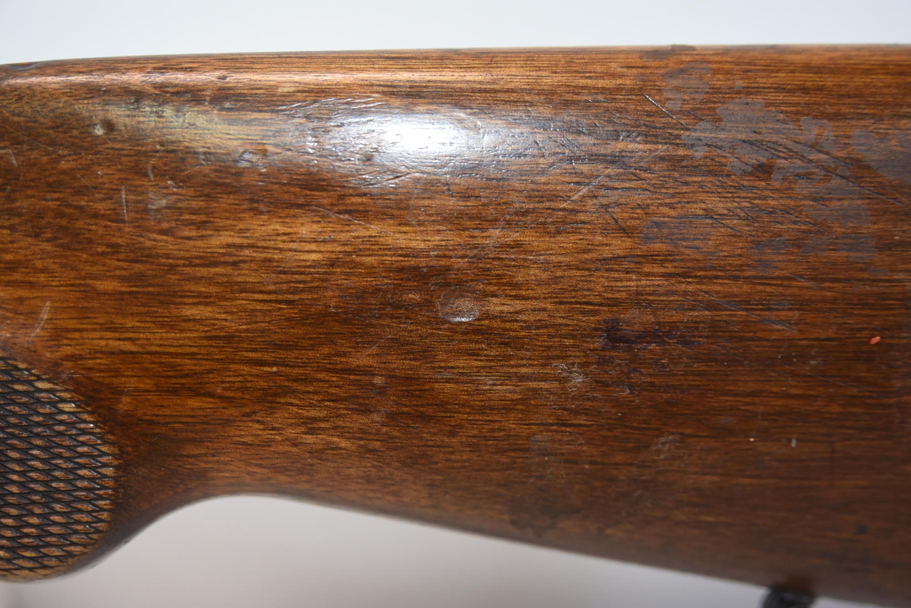 Wood stock shows few light scratches, scuffs, few light dents; condition is good.