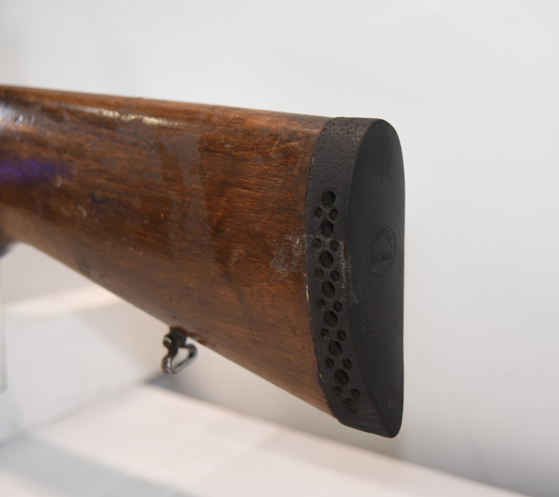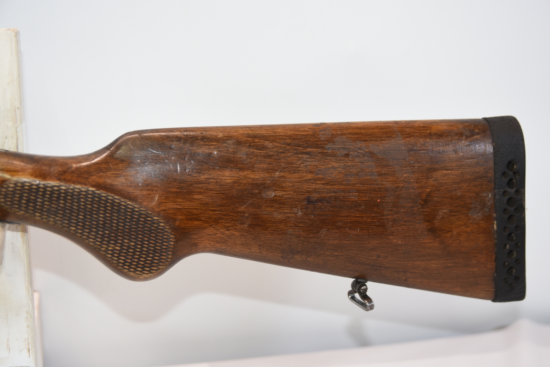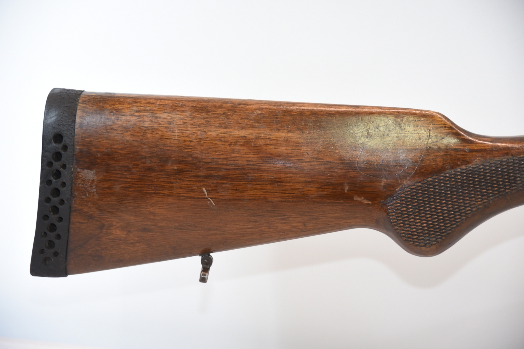Wood stock shows few light scratches, scuffs, few light dents; condition is good.