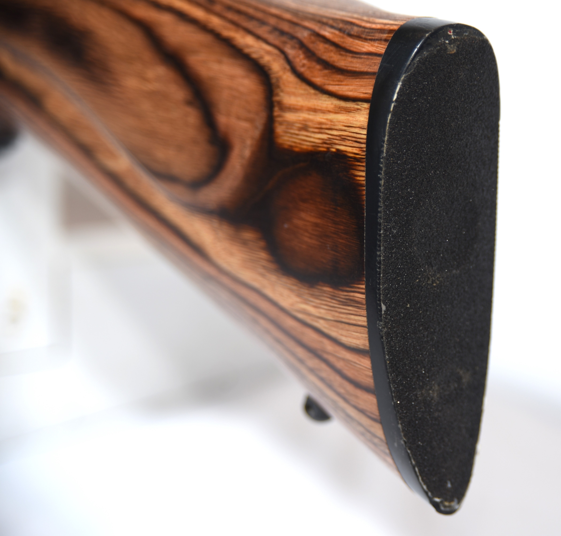 Wood stock shows minimal handling marks, there is anti-slip sticker on butt plate; condition is excellent.