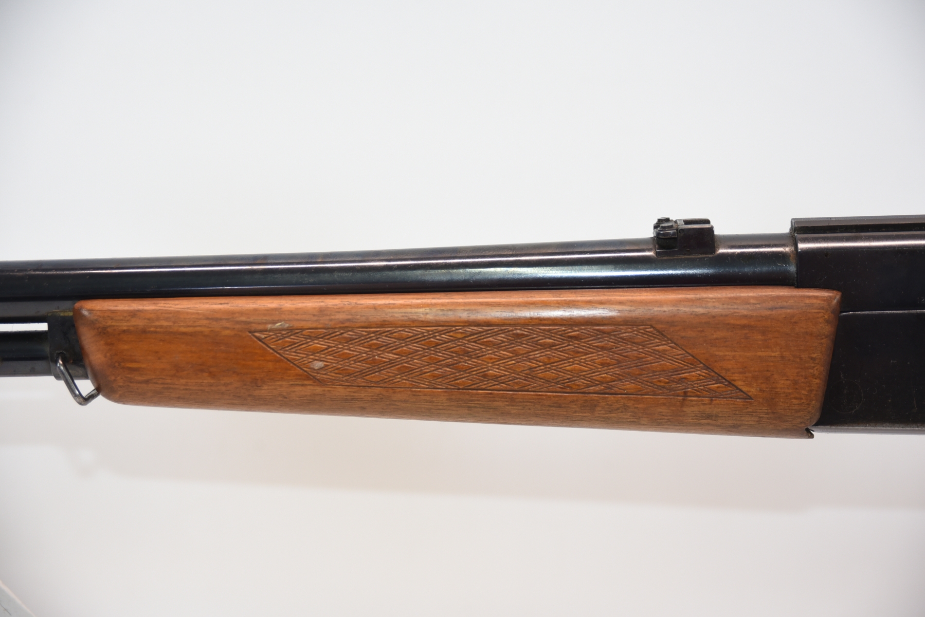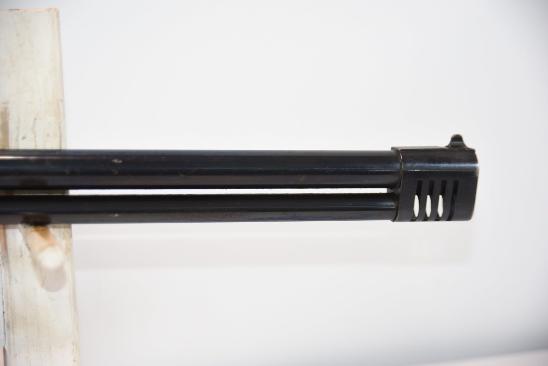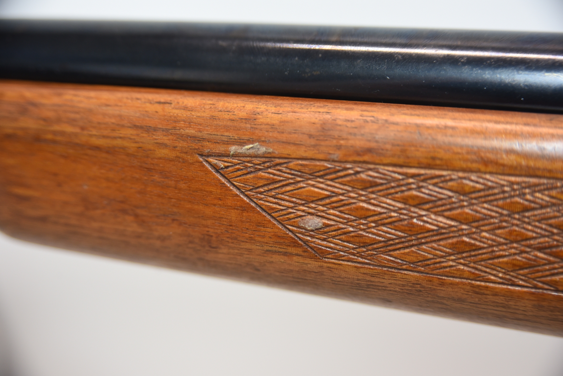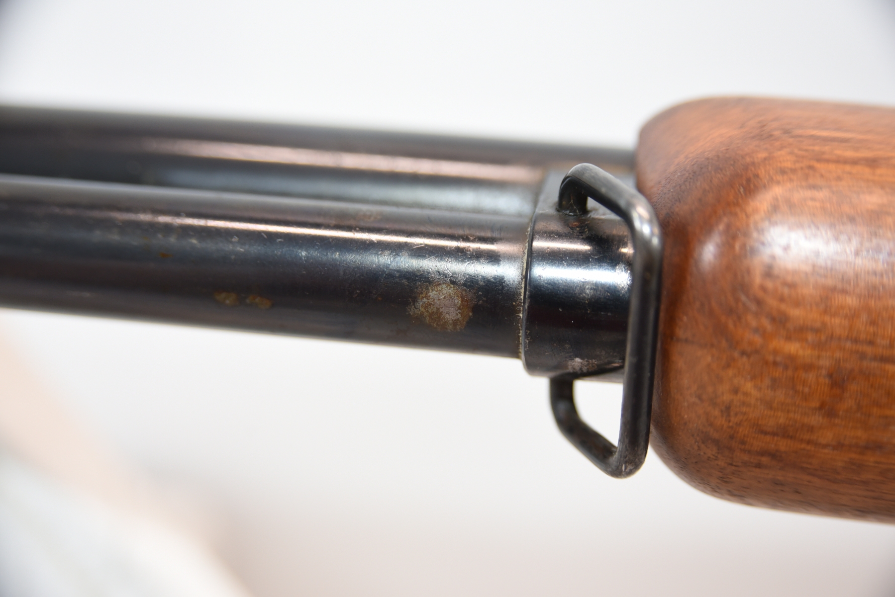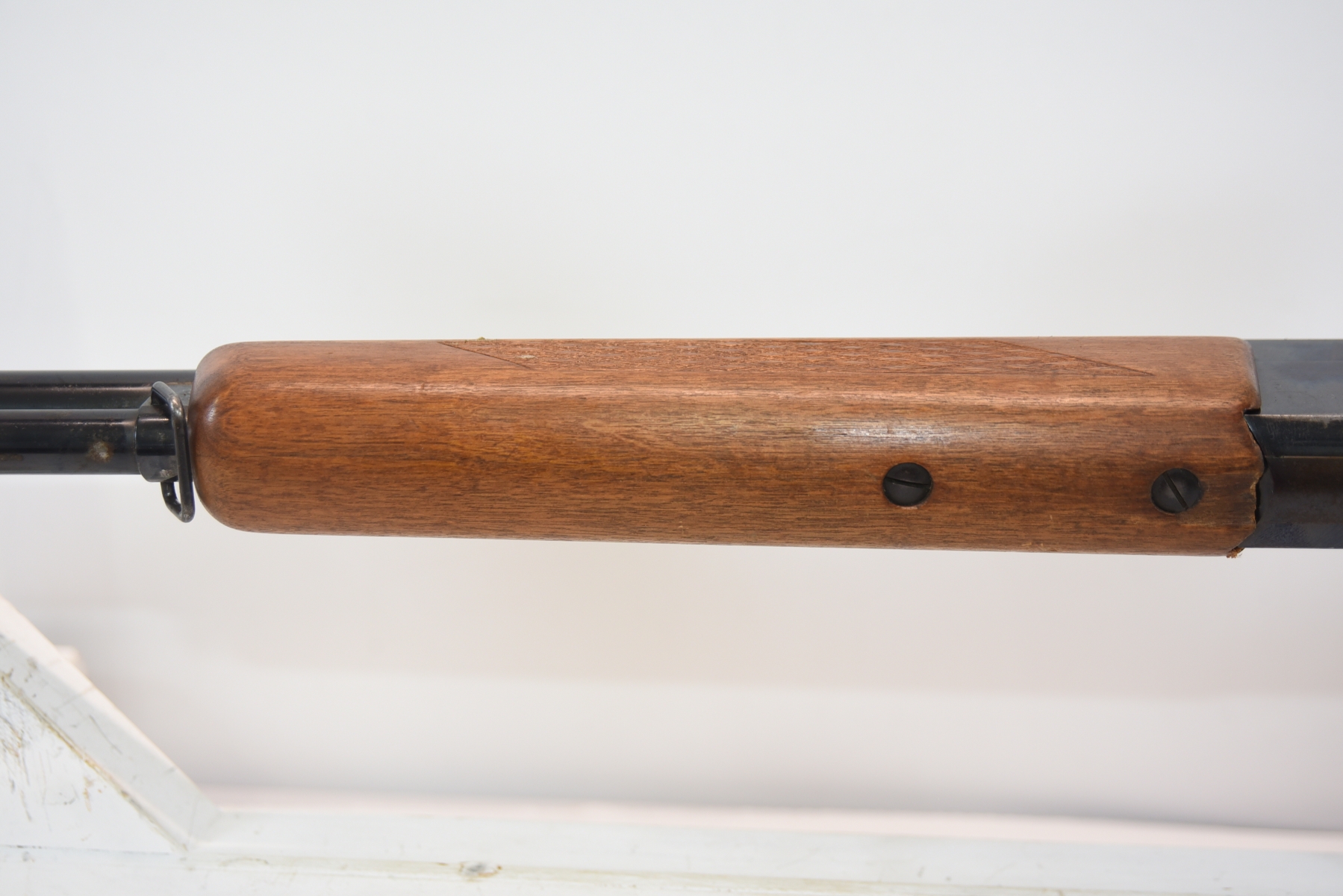 Wood stock shows forearm has 4 chips, there are scratches and dents in various areas throughout; condition is fair.
