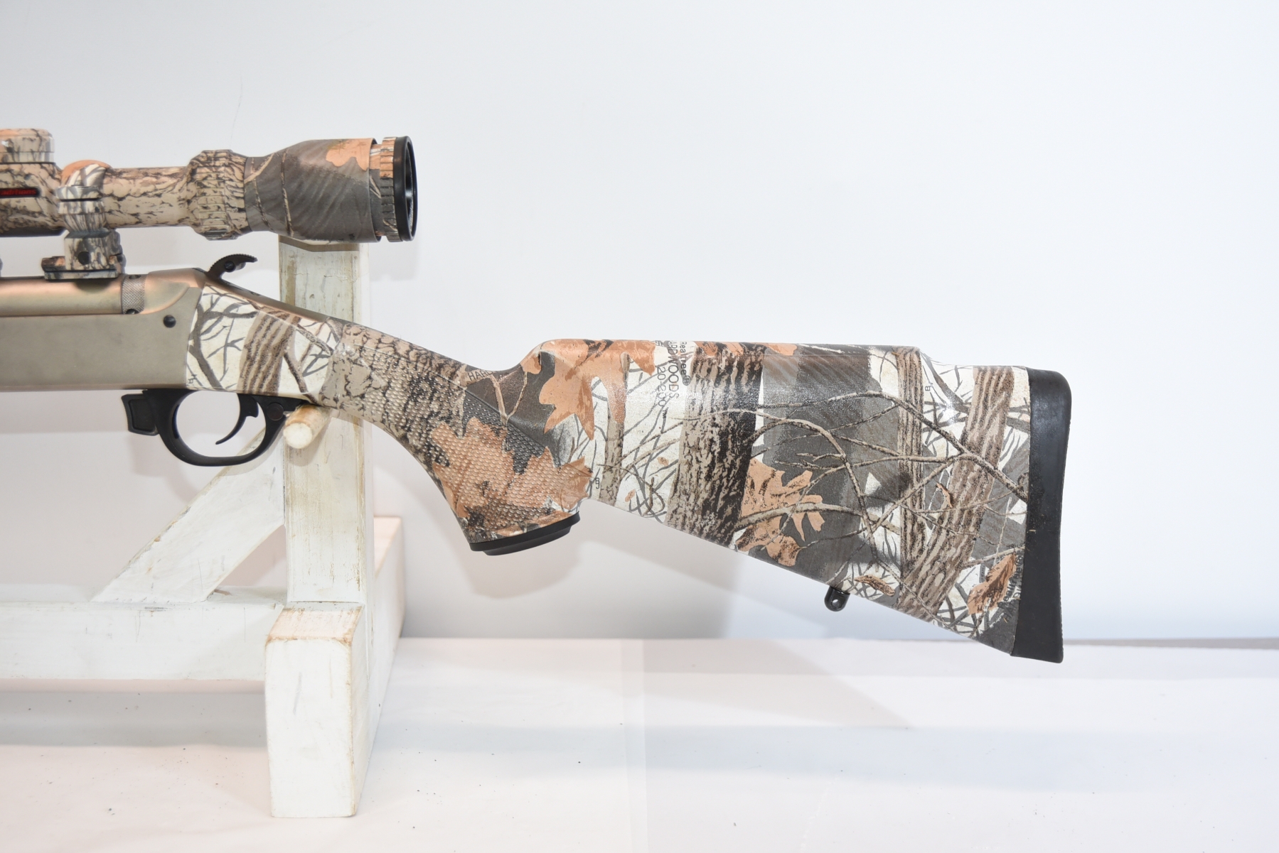 Real Tree Hardwoods camouflage stock has sticky adhesive on the rear stock, there are few scratches and scuffs; condition is very good.