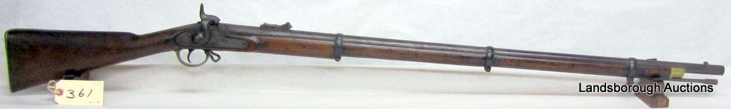 ANTIQUE, SINGLE SHOT, 585 DIAMETER, 38" BARREL, SN NONE. WOOD CRACKED ON LEFT SIDE BEHIND BARREL, BLUING AND BORE RUSTY AND PITTED.