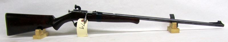 NON-RESTRICTED, BOLT-ACTION SINGLE SHOT, .22LR, 24 INCH BARREL, NO SN. BORE EXCELLENT, WOOD SCRATECHED WITH CHIP BEHIND RECEIVER, MISSING STOCK BOLT. FITTED WITH PEEP WIGHT AND WILLIAMS FRONT SIGHT.