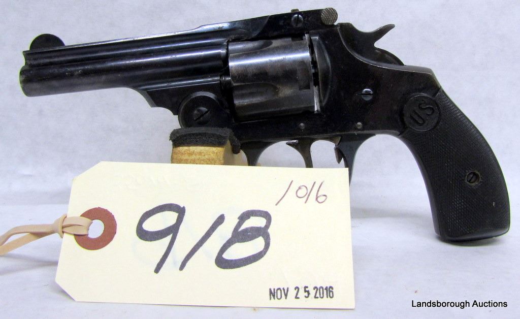 PROHIBITED, REVOLVER, 38 S&W, 83MM BARREL, SN 52160. GRIPS HAVE ONE SMALL CHIP, BLUING IS GREY AND WORN, BORE GOOD.