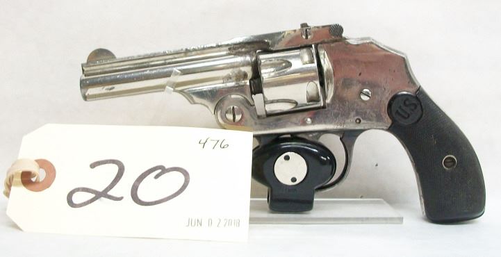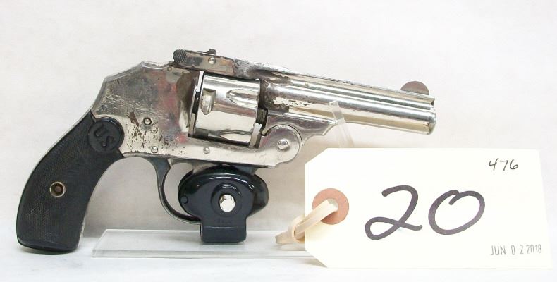 PROHIBITED, REVOLVER, 32 S&W, 76MM BARREL, SN 4093. GRIPS HAVE MARKS, NICKEL PLATING IS PITTED, BARE IN FRONT OF CYLINDER, BORE PITTED.