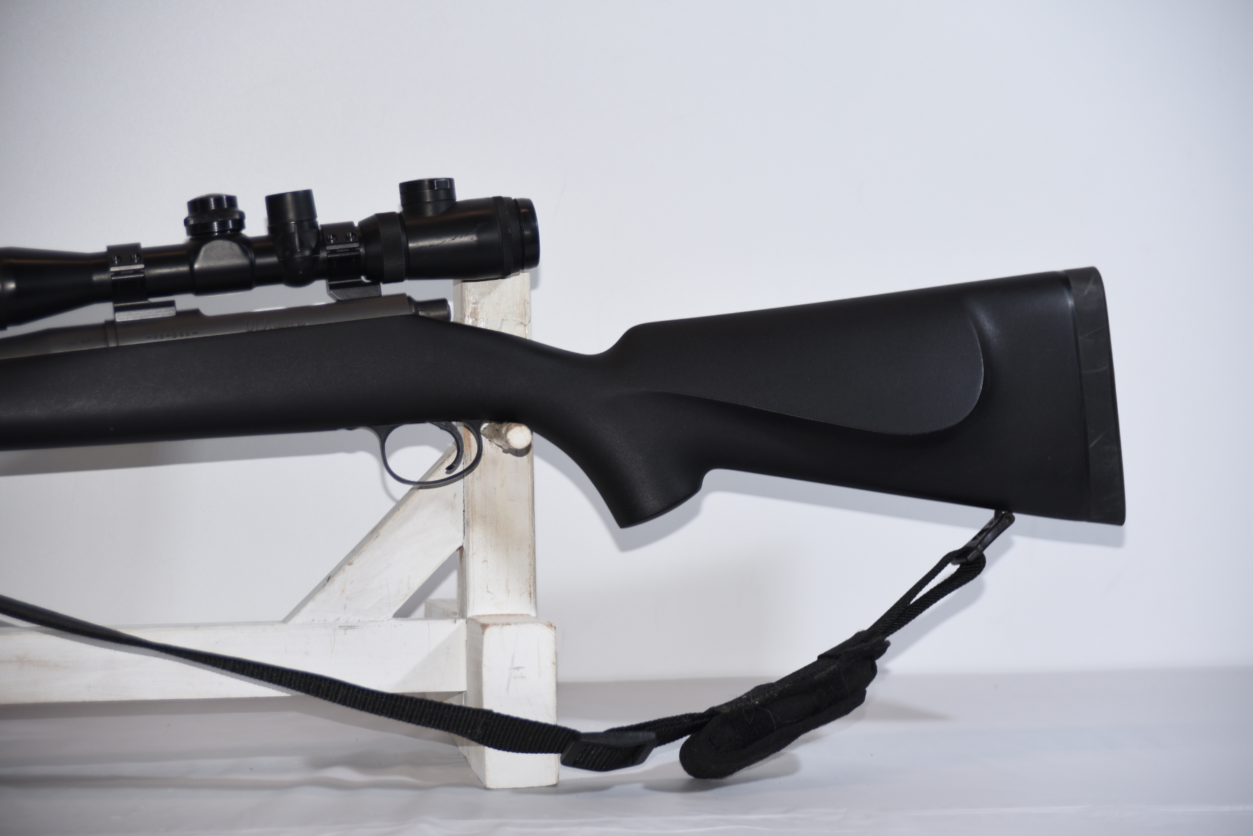 Synthetic stock shows few light scuffs and scratches; condition is excellent.