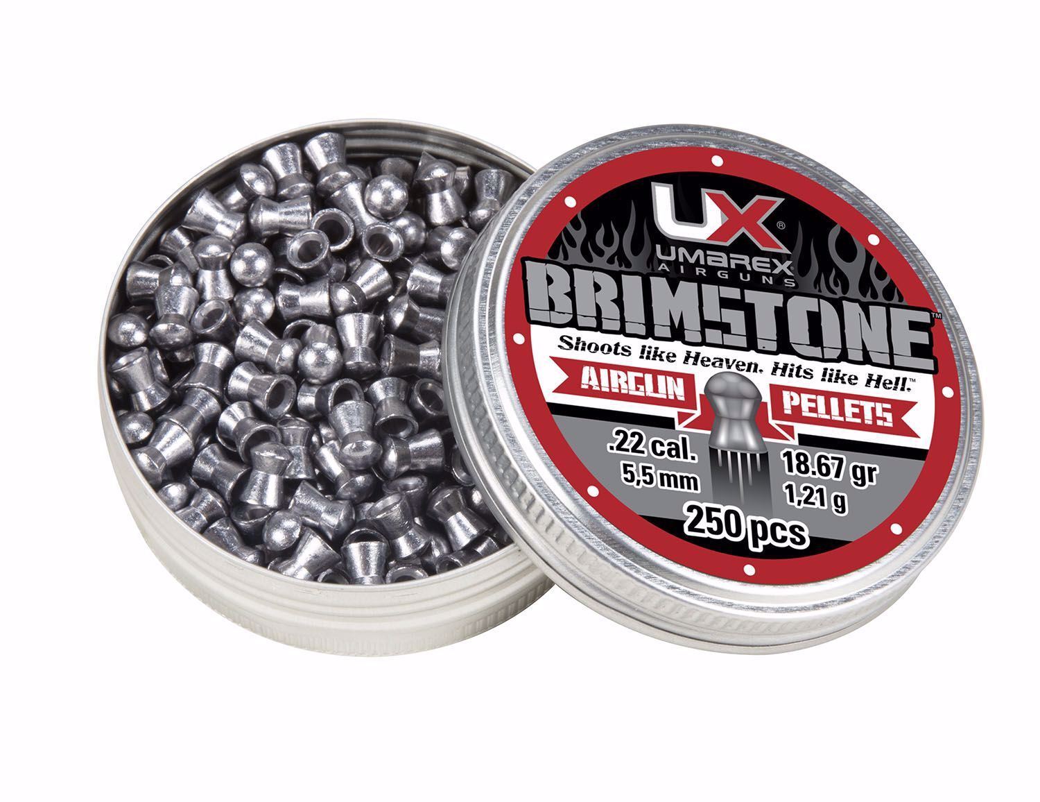 Umarex Brimstone Airgun Pellets .22 Cal 18 Grain (250 Count) Sku 2211353 Umarex Brimstone .22 Caliber pellets shoot like heaven and hit like hell. With 18.67 grains flying through the air in a traditional dome style pellet form, the Umarex Brimstone pellets deliver superior accuracy and hard hitting performance for all-around shooting performance. They come in a tin with…