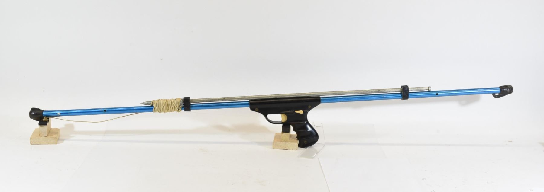 Missing parts, unknown functionality. 48" long with a 28 1/2" spear. Comes with a Plano Gungard hard case 51" long x 10" wide x 3" deep.