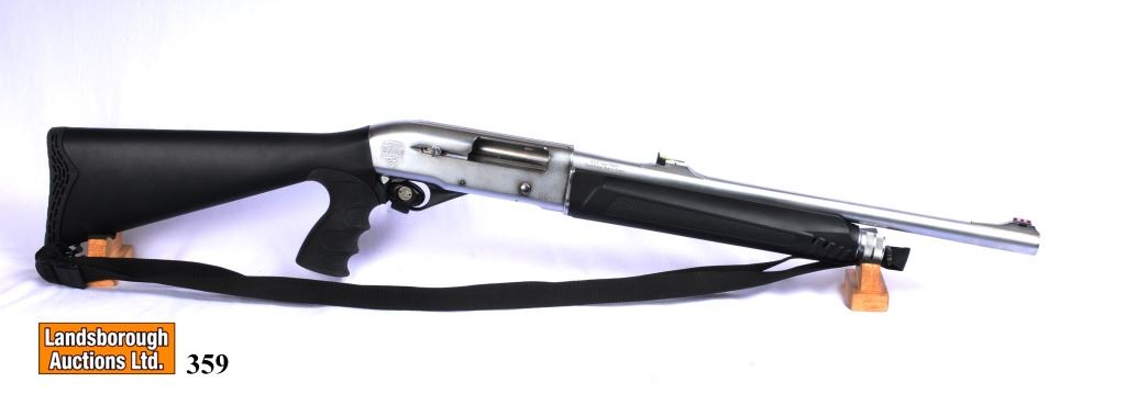 Non-Restricted, semi auto, 12ga x 3", 19 3/4" barrel with removable Mod choke, SN V01303. Synthetic stock very good, chromwe plating has a scratch, bore good.