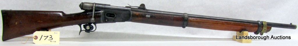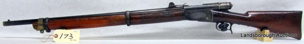 ANTIQUE, BOLT ACTION, 41 SWISS RF, 27" BARREL, SN 71589. WOOD HAS GOUGES AND DENTS, BLUING IS BROWN, BORE PITTED WITH PROMINENT RIFLING.