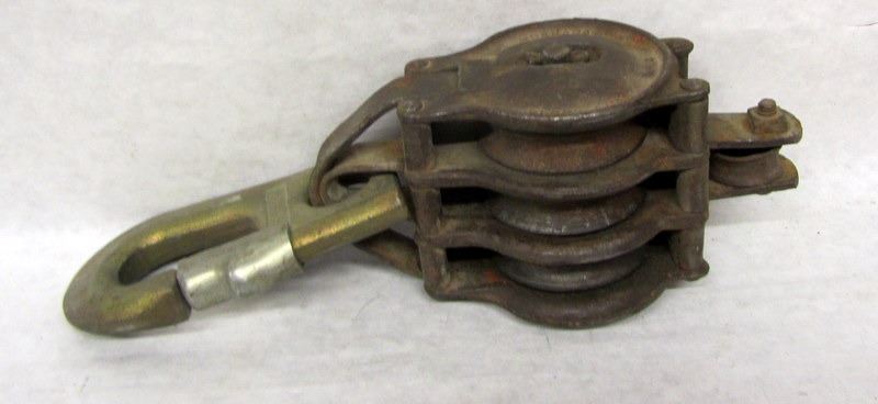 MADE IN CANADA. SOME RUST ON SURFACE. PULLEYS ROTATE FREELY, NOT SIEZED.