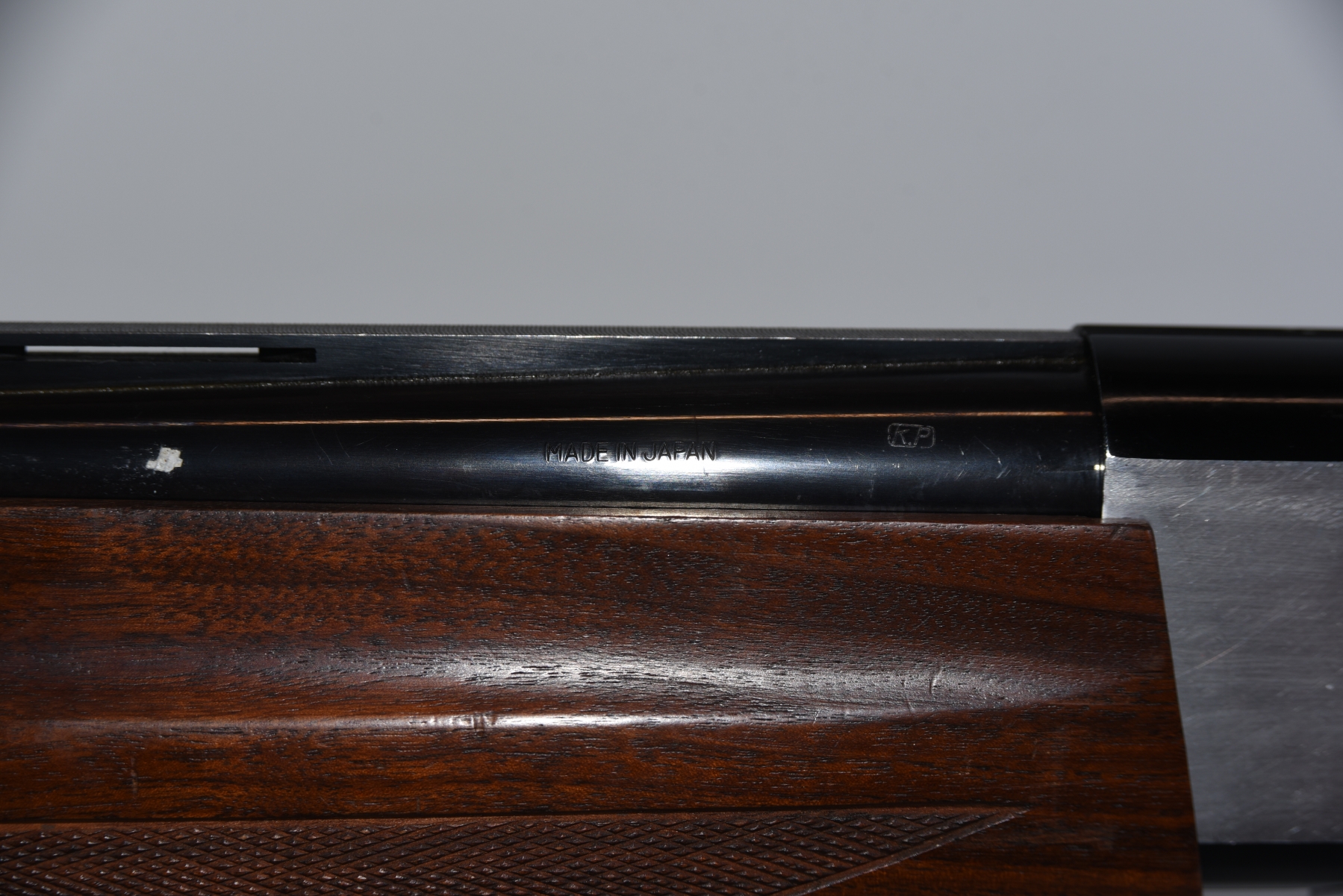Wood stock shows some scratches and scuffs, finish wear spots; condition is good.