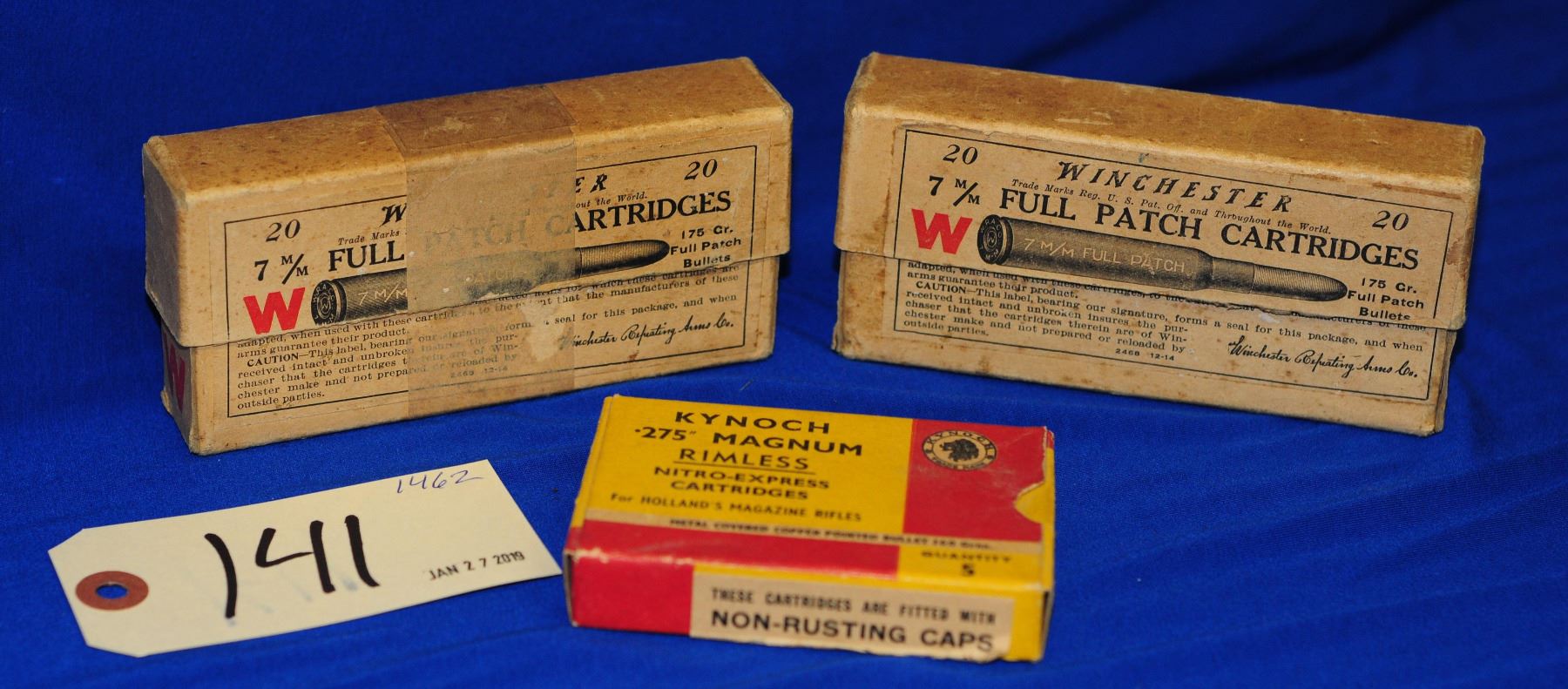 2 Winchester 7mm full patch cartridge boxes and 1 .275 magnum box