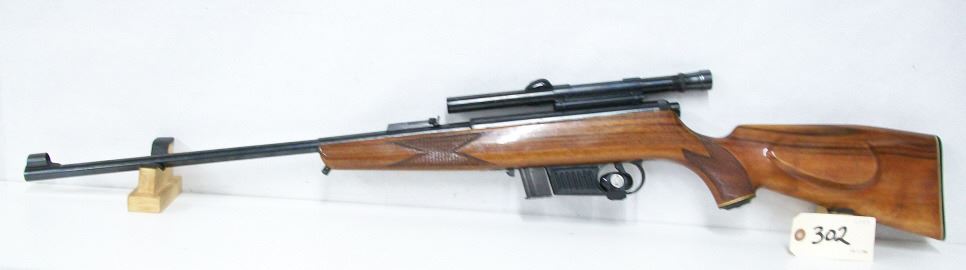 Non-Restricted, semi auto, 20 inch barrel. Serial number 106660. Wood has handling marks, blueing is good with slight patina. Bore is good. Comes with a Weaver B4 4X scope.