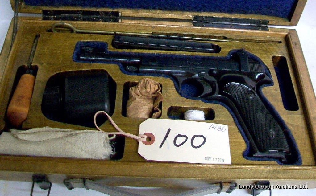 Restricted, semi auto, 22LR, 152mm barrel, SN P1192C. Excellent condition. Comes with display box, extra mag, cleaning tools, springs.