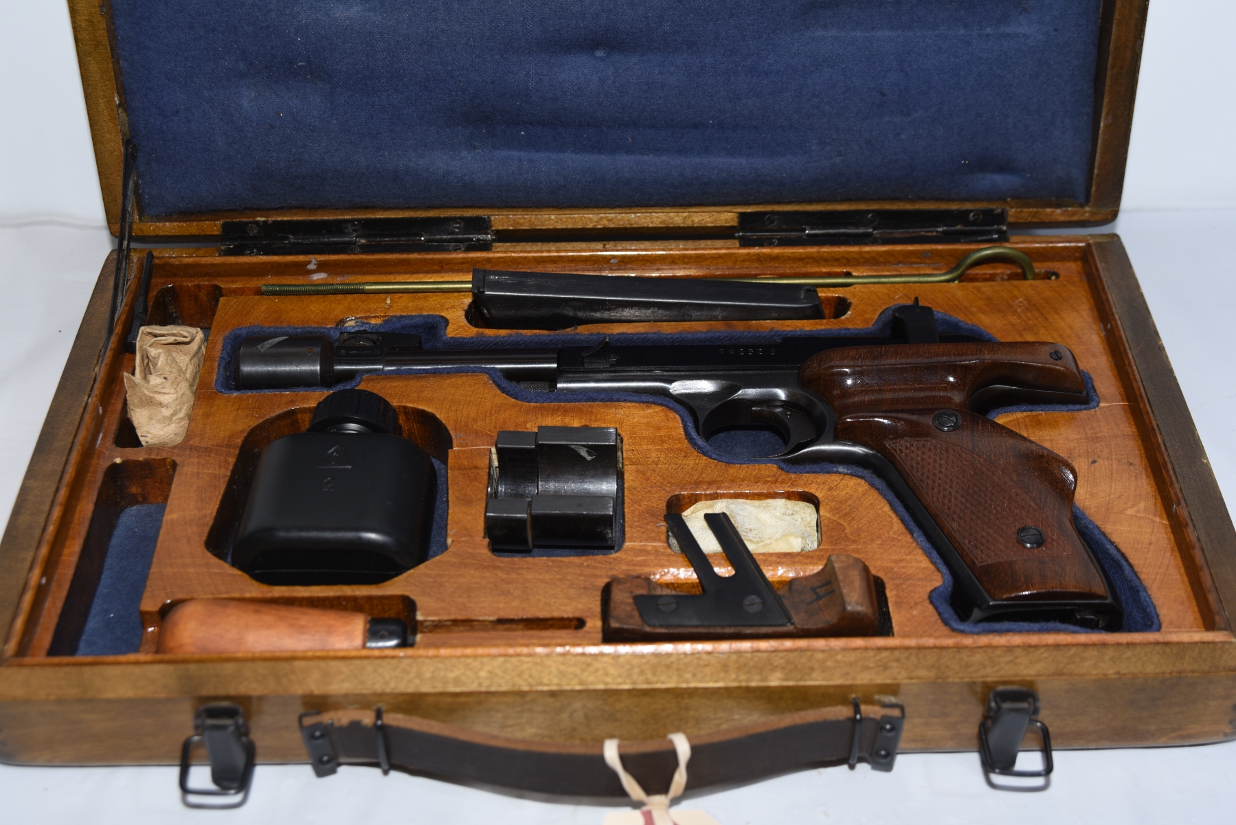 Firearm comes with extra firing pin, barrel weights, case, cleaning rod, 2 magazines total, screw driver, oil bottle.