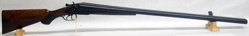 NON RESTRICTED HAMMER DOUBLE BARREL, 10GA DAMASCUS BARREL, FULL FIXED CHOKE, S/N6413. WOOD IS SLIGHTLY SCRATCHED AND MISSING LARGE PIECE ON WRIST, BLUING IS AGED AND PITTED, BORE IS PITTED.