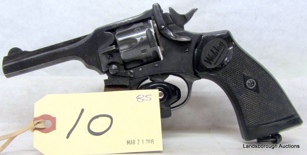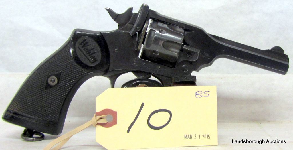 PROHIBITED, REVOLVER, 32 CAL, 102MM BARREL, SN A17741. GRIPS MARKED AND WORN, BLUING SCRATCHED WITH SOME PITTING, BORE GOOD. MAY NOT BE PERMISSABLE FOR IMPORTATION INTO USA.