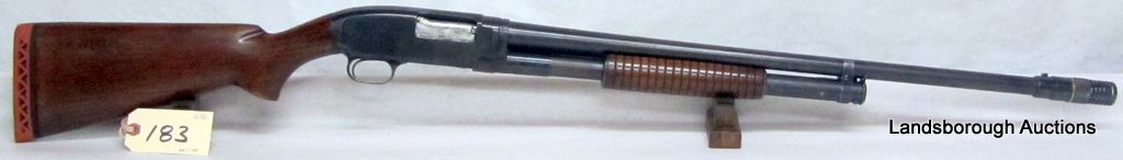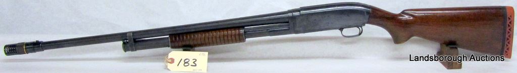 NON-RESTRICTED, PUMP ACTION, 12GA X 2 3/4", 28" BARREL WITH POLYCHOKE, SN 843267. WOOD CRACKED BEHIND RECEIVER, BLUING IS BROWN, BORE VERY GOOD.