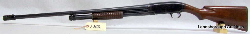 NON-RESTRICTED, PUMP ACTION, 16GA X 2 3/4", 28" BARREL WITH ADJUSTABLE CHOKE, SN 665400. WOOD HAS FEW MARKS, BLUING GREY WITH PITTIN ON RECEIVER, BORE VERY GOOD.