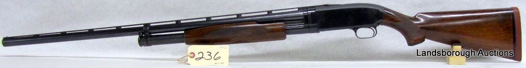 NON-RESTRICTED, PUMP ACTION, 12GA X 2 3/4", 30" BARREL WITH FIXED FULL CHOKE, SN 817148. WOOD HAS SOME MINOR SCRATCHES, BLUING VERY GOOD, BORE VERY GOOD.
