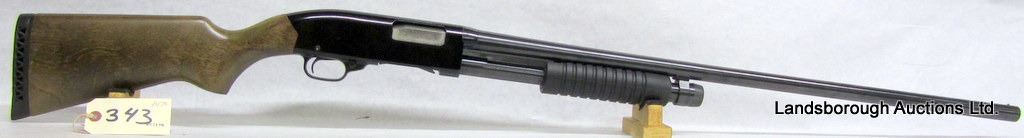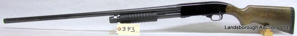 NON-RESTRICTED, PUMP ACTION, 12GA X 3", 30" BARREL WITH FIXED FULL CHOKE, SN L1779213. WOOD HAS SMALL CHIP BEHIND RECEIVER, BLUING HAS A COUPLE MARKS ON BARREL, BORE EXCELLENT.