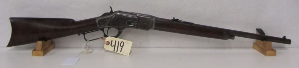 NON-RESTRICTED, 32WCF, 20" BARREL, S/N 262425B, WOOD HAS TYPICAL AGE MARKS AND BRUISING NO MAJOR CRACKS, BLUEING GOING BROWN AND HAS SOME PITTING BUT NO RUST, BORE IN GOOD CONDITION.