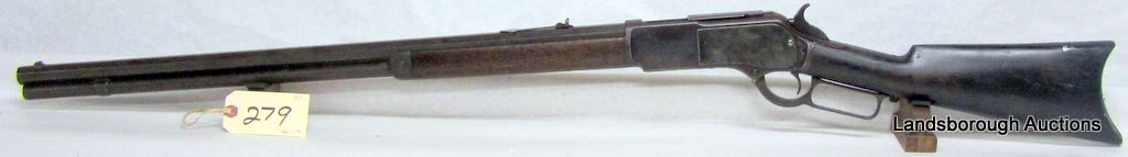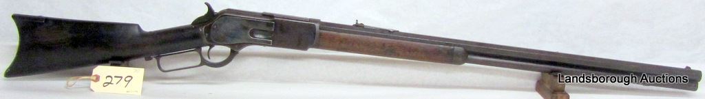 NON-RESTRICTED, LEVER ACTION, 45-75, 28" OCTAGONAL BARREL, SN 37540. WOOD CRACKED LENGTH OF BUTT STOCK, BLUING IS BROWN, CASE HARDENING EVIDENT ON SIDE PLATES, BORE PITTED, RIFLING FAINT. MFD 1883.