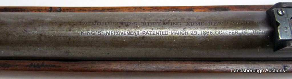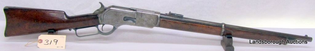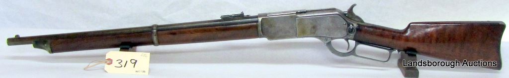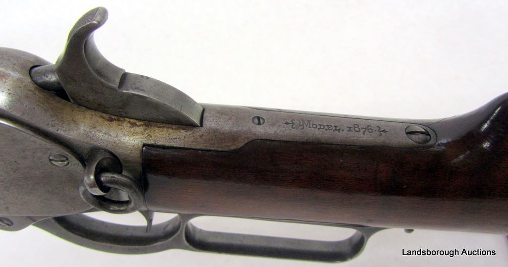 NON-RESTRICTED, LEVER ACTION, 45-75 WCF, 22" BARREL, SN 44154. WOOD CRACKED BEHIND UPPER TANG, BLUING IS GONE, TURNING BROWN, BORE PITTED. BUTT STOCK STAMPED NWMP. MFD 1884.