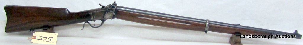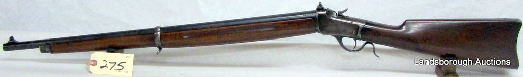 NON-RESTRICTED, SINGLE SHOT, 22 SHORT, 27 3/4" BARREL, SN 122935. WOOD CRACKED BEHIND LOWER TANG, BLUING GREY AND WORN, BORE PITTED WITH RING MARK 3/4 WAY DOWN BARREL. STAMPED US AND A FLAMING BOMB.