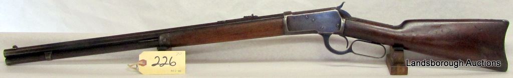 NON-RESTRICTED, LEVER ACTION, 44 WCF, 24" OCTAGONAL BARREL, SN 193893. WOOD CRACKED BEHIND RECEIVER, BLUING IS BROWN, BORE PITTED. MFD 1902.