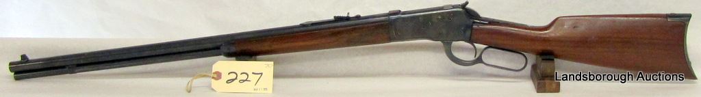 NON-RESTRICTED, LEVER ACTION, 25-20 WCF, 24" BARREL, SN 874497. BUTT STOCK WOOD REFINISHED, BLUING IS GREY, BORE VERY GOOD. MFD 1919.