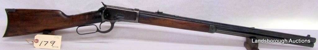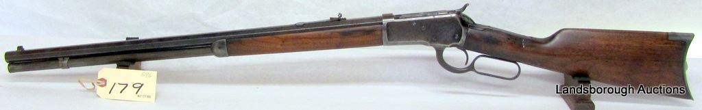 NON-RESTRICTED, LEVER ACTION, 44 WCF, 24" OCTAGONAL BARREL, SN 18833. WOOD HAS REPAIRED WRIST, BLUING IS BROWN, BORE PITTED, RIFLING EVIDENT. MFD 1892.