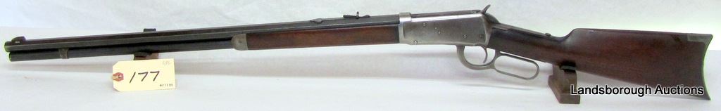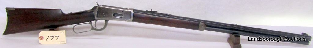 NON-RESTRICTED, LEVER ACTION, 32 WS, 26" OCTAGONAL BARREL, SN 330668. WOOD APPEARS REFINISHED, BLUING IS BROWN, MOSTLY BARE ON RECEIVER, BORE FAIR. MFD 1905.