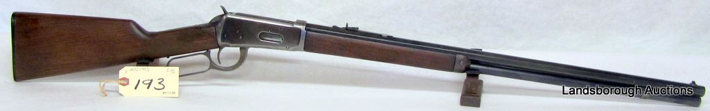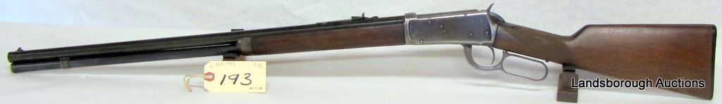 NON-RESTRICTED, LEVER ACTION, 30 WCF, 26" OCTAGONAL BARREL, SN 290472. WOOD HAS BEEN HAND CHECKERED, BLUING IS GREY, BORE STAINED WITH GOOD RIFLING. MFD 1903.