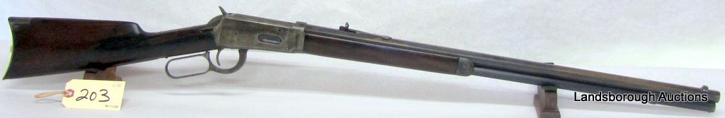 NON-RESTRICTED, LEVER ACTION, 38-55 WIN, 26" OCTAGONAL BARREL, SN 262732. WOOD CRACKED BEHIND UPPER TANG, CHIP OUT OF TOE AND RIGHT SIDE BEHIND RECEIVER, BLUING IS GREY AND PITTED, BORE HAS VERY POOR RIFLING.