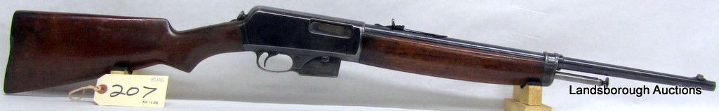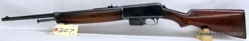 NON-RESTRICTED, SELF LOADING, 401 WIN SL, 20" BARREL, SN 627. WOOD HAS DENTS SCRATCHES AND MARKS, BLUING GREY AND WORN, BORE VERY GOOD. BUTT PLATE BROKEN. PRESENTATION GUN