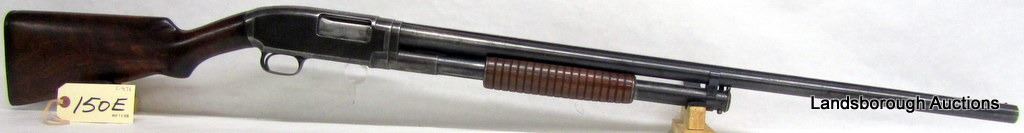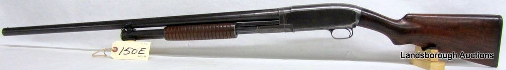 NON-RESTRICTED, PUMP ACTION, 12GA, 30" BARREL WITH FIXED FULL CHOKE, SN NONE. WOOD HAS A COUPLE MARKS, BLUING IS GREY AND WORN, BORE GOOD.