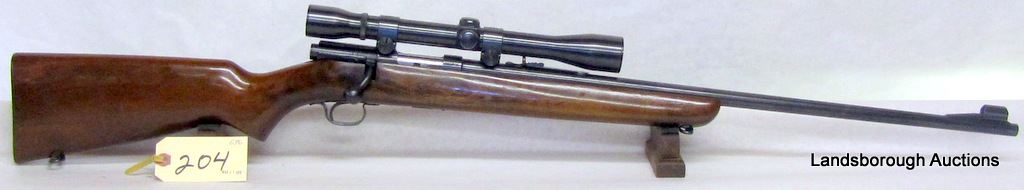 NON-RESTRICTED, BOLT ACTION, 22 HORNET, 24" BARREL, SN 22070A. WOOD HAS SOME MARKS IN THE FINISH, BLUING GOOD, BORE EXCELLENT. COMES WITH WEAVER K6 SCOPE.