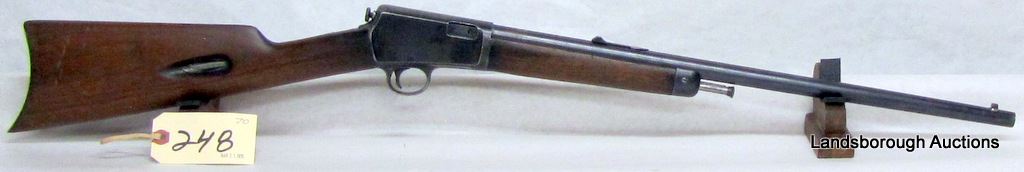 NON-RESTRICTED, SEMI AUTO, 22LR, 20 1/2" BARREL, SN 73192. WOOD HAS A FEW DENTS AND MARKS, BLUING GREY AND WORN, BORE VERY GOOD. MFD 1948. BARREL SHORTENED AND RECHAMBERED.