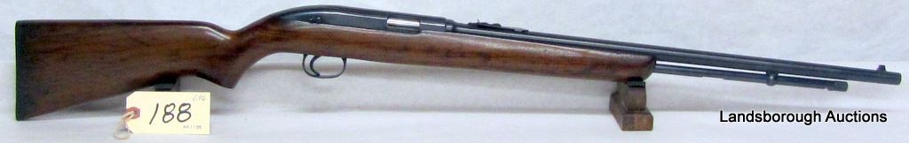 NON-RESTRICTED, SEMI AUTO, 22 LR, 22" BARREL, SN 89302. WOOD HAS A COUPLE DEEP DENTS, BLUING HAS VERY FEW MARKS, BORE VERY GOOD.