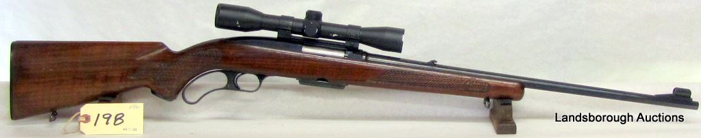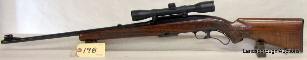 NON-RESTRICTED, LEVER ACTION, 308 WIN, 22" BARREL, SN 224867A. WOOD HAS LOTS OF LIGHT MARKS IN FINISH, BLUING HAS LIGHT PITTING ON BARREL, BORE VERY GOOD.