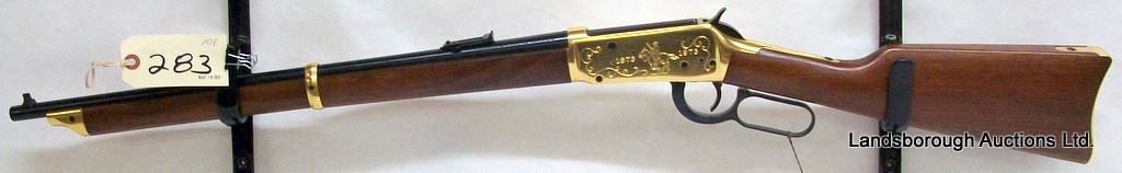 NON-RESTRICTED, LEVER ACTION, 30-30 WIN, 20" BARREL, SN RCMP4100. UNFIRED. A COUPLE PIT MARKS ON BRASS PLATING. CARDBOARD SLEEVE TATTERED.