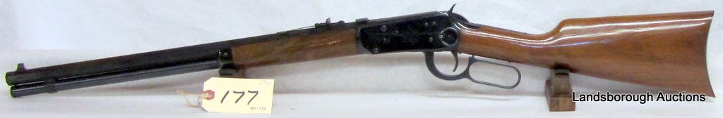 NON-RESTRICTED, LEVER ACTION, 30-30 WIN, 20" BARREL, SN 1110. WOOD HAS A FEW MARKS AND SCRATCHES, BLUING VERY GOOD, BORE HAS NO RIFLING, SMOOTH BORE.