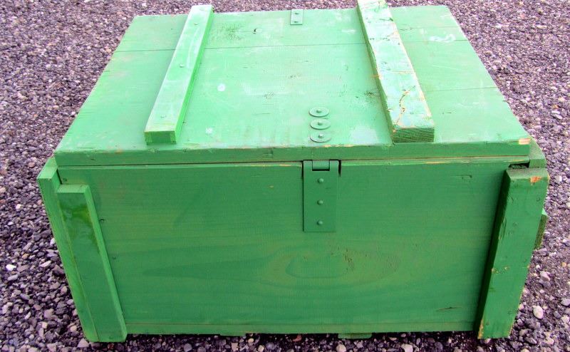 LARGE GREEN WOODEN AMMUNITION CRATE, FOR 7.62X39 CANS. PICK UP ONLY, WILL NOT SHIP