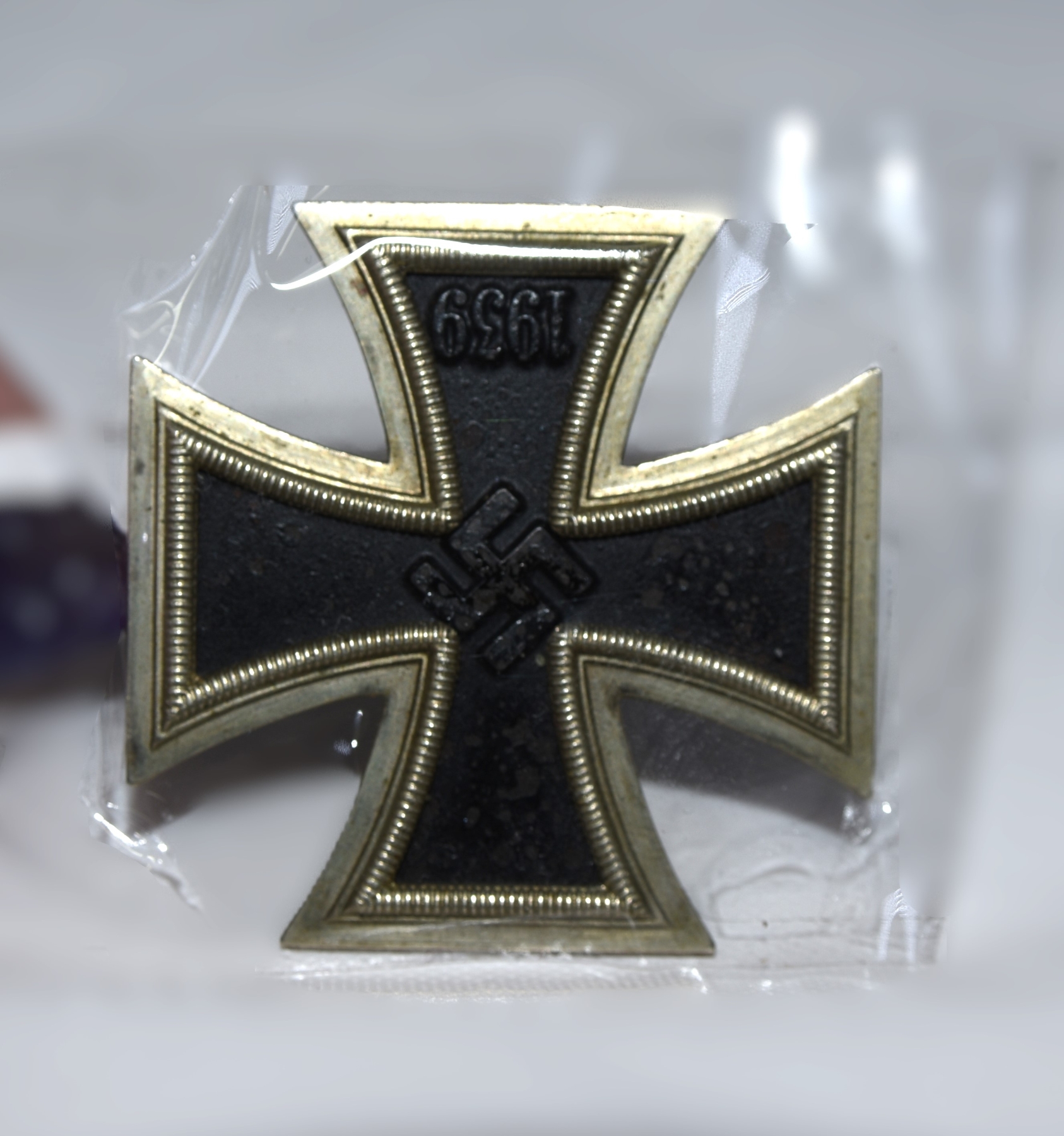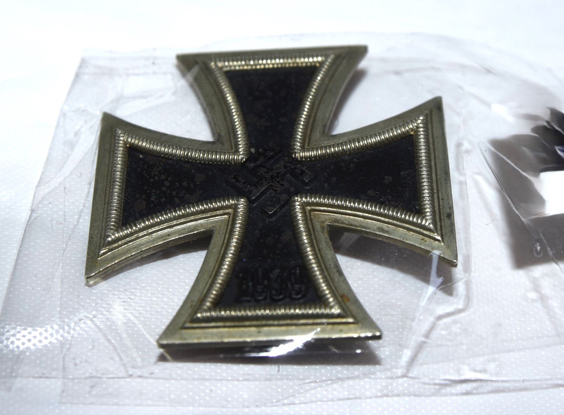 The obverse displays the raised central motif and “1939” date, with beaded border and defined cross arms. The reverse shows a pin-back mounting system, intact and functional.