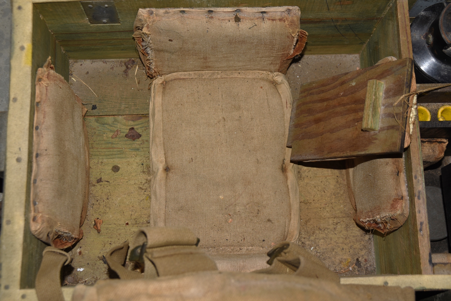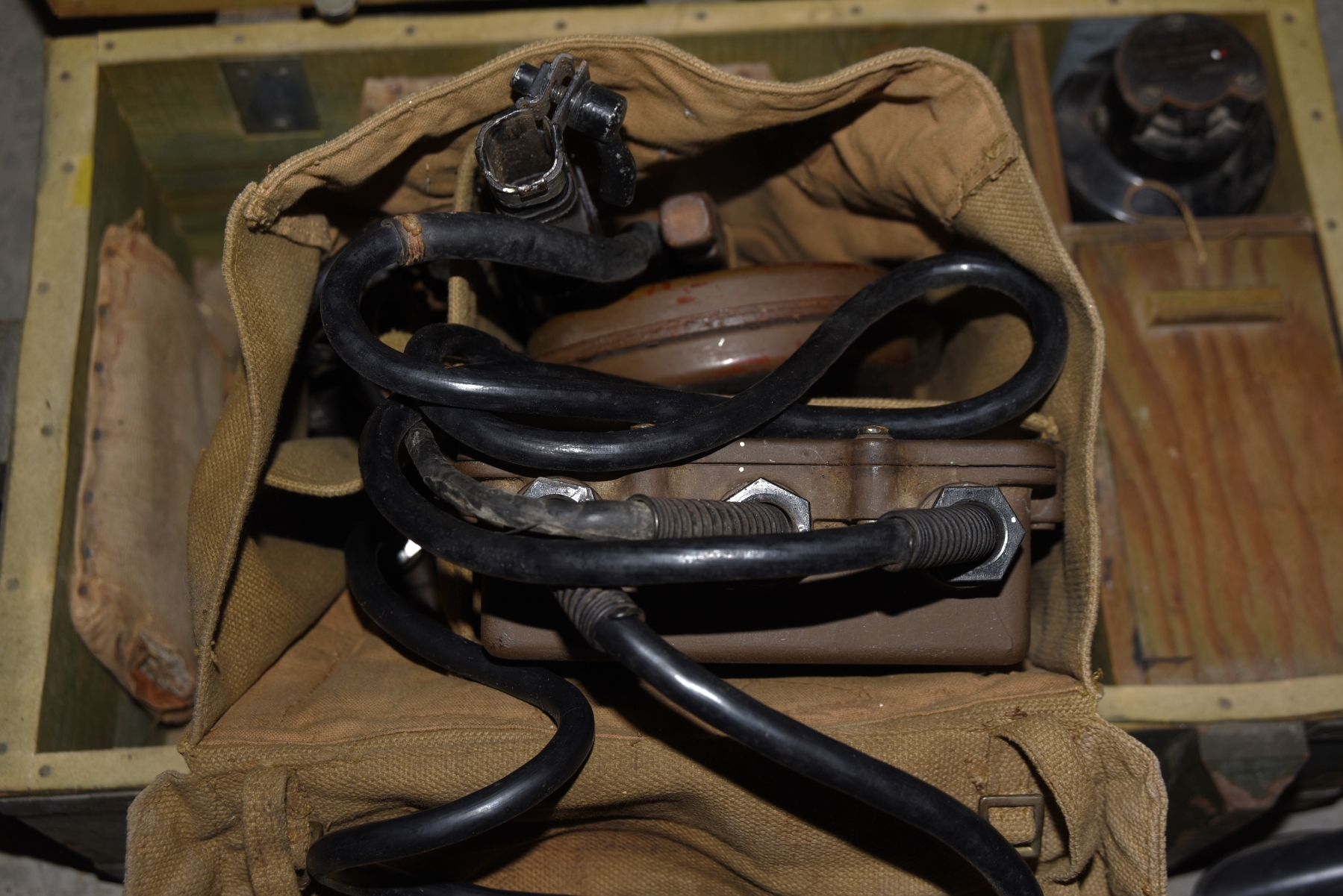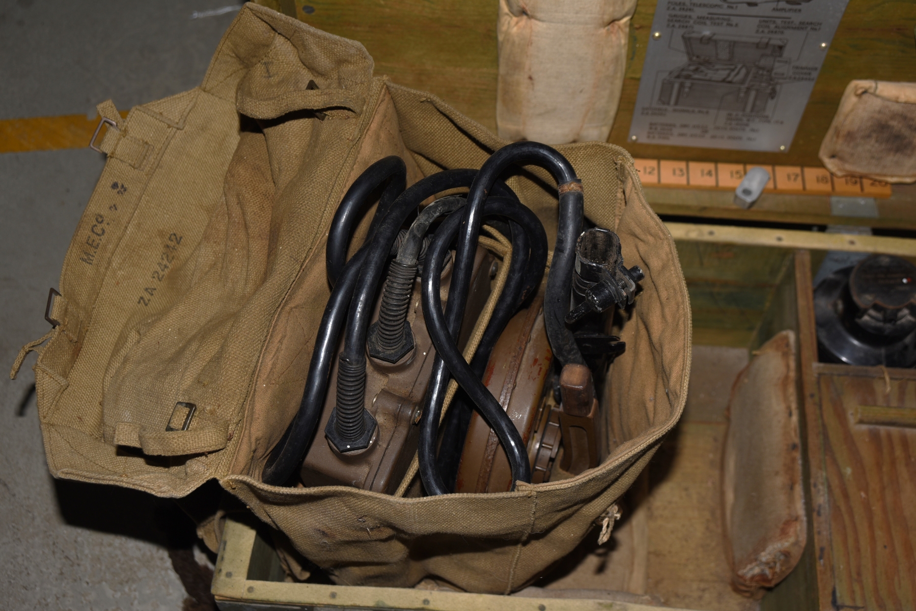 Canvas components display age-related discoloration, staining, and handling wear, consistent with military surplus equipment. Metal and electronic components show typical storage wear and light oxidation consistent with age.